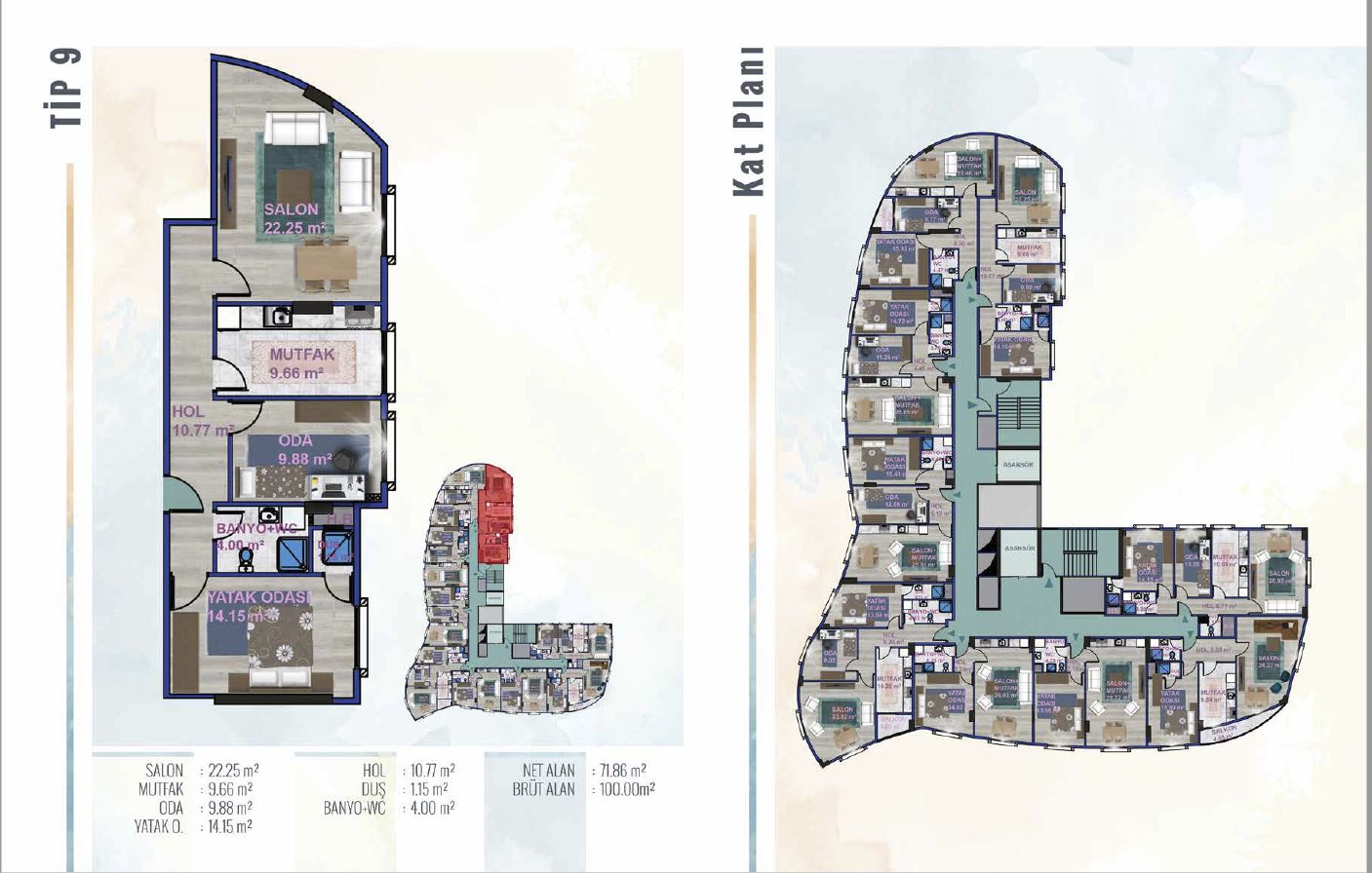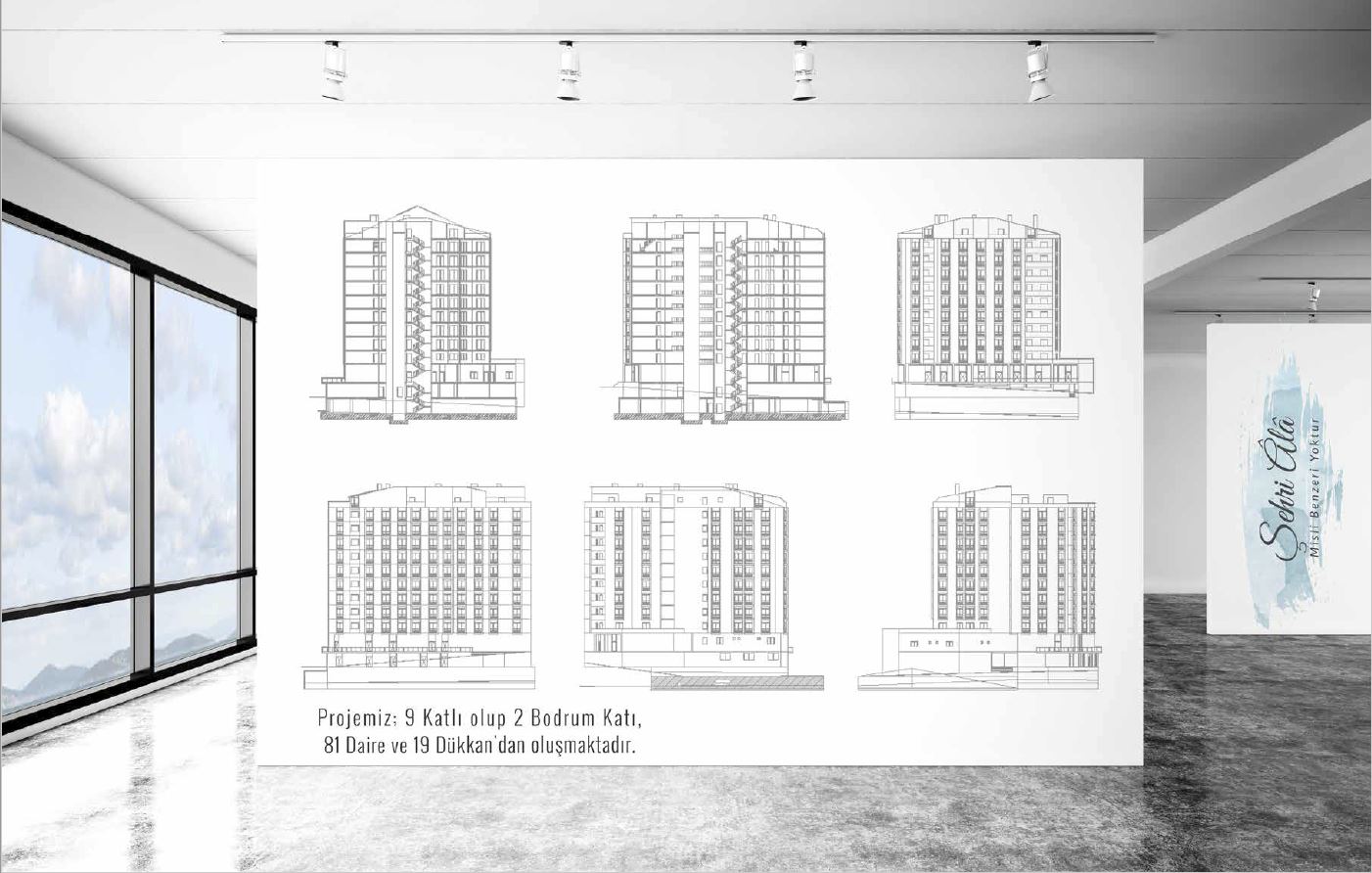 Şehri Ala Projemiz, 2 bodrum, 1 zemin 9 Kat, 81 Daire ve 19 Dükkan'dan oluşmaktadır.